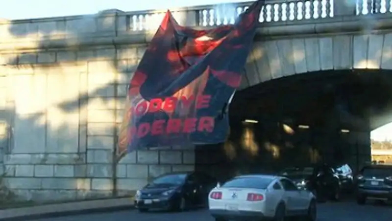В Вашингтоне на Арлингтонском мосту появился баннер с Обамой и надписью «Прощай, убийца»