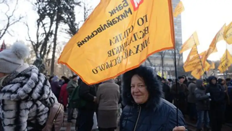 Митингующие у здания Нацбанка выступают за отставку его главы Валерии Гонтаревой, участники акции у парламента Украины требуют вернуть им вклады из обанкротившихся банков "Михайловский", Дельта банк и VAB банк. Митингующие также выступают за снижение тарифов на коммунальные услуги.