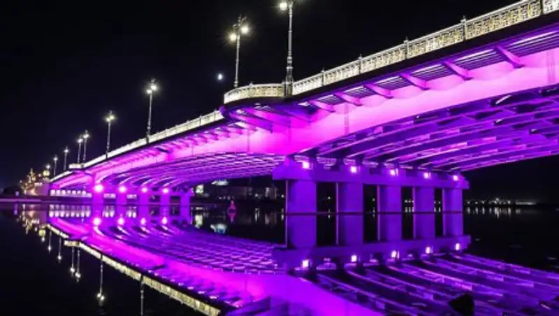 В Астане монумент «Байтерек», торгово-развлекательный центр «Хан Шатыр», мосты «Сарыарка», «М-2» засияют сиреневой подсветкой.