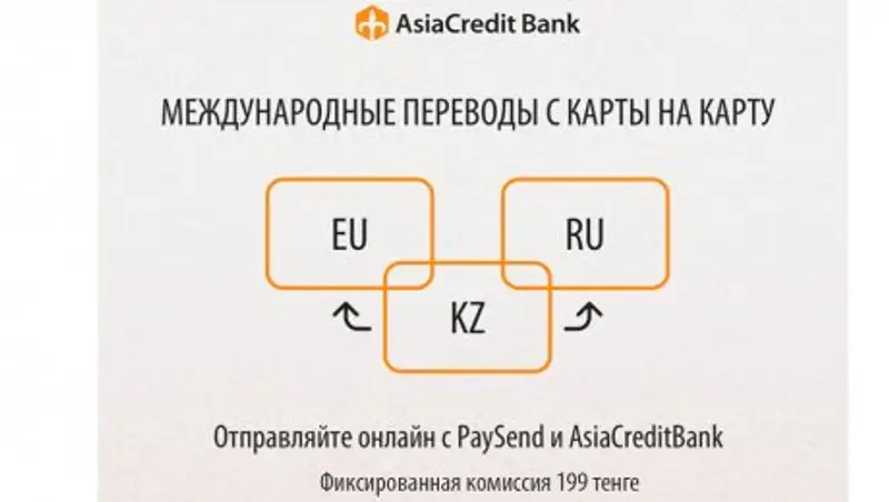 Имея финансовые и юридические взаимоотношения с международными платежными системами, AsiaCredit Bank обеспечивает взаиморасчеты связанные с переводами с Казахстанских платежных карт, со всеми партнерами Paysend по миру. Таким образом, AsiaCredit Bank выступает в качестве расчетного банка между потребителями услуги быстрых переводов.