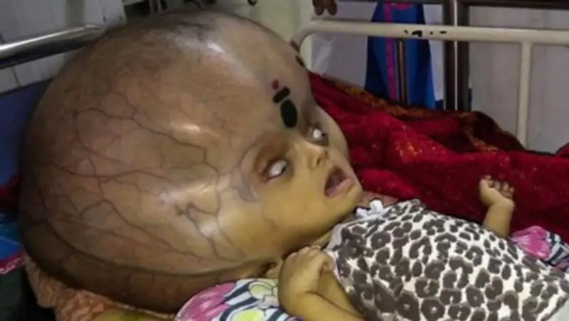 Малыш появился на свет в штате Рапур в Индии. Вскоре после появления на свет его голова начала быстро увеличиваться в размере, пока не достигла диаметра 96 сантиметров из-за редкого состояния, которое называется гидроцефалия. Оно приводит к скоплению избыточного количества жидкости в голове.