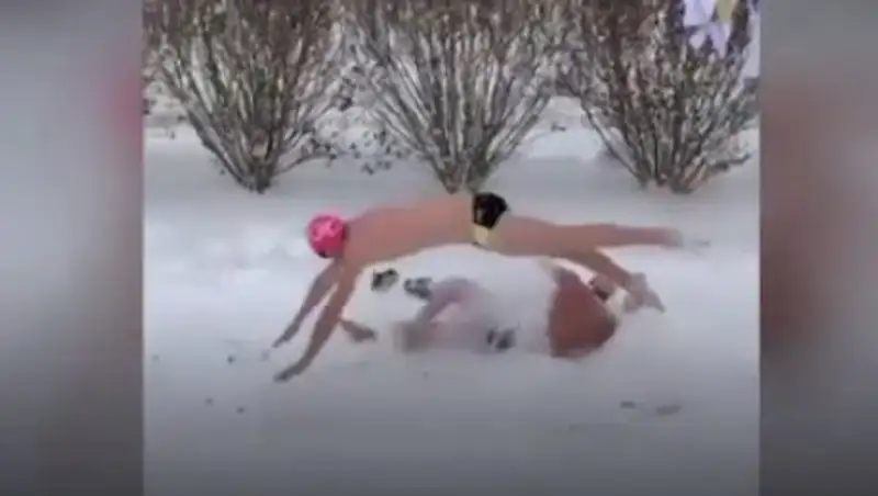 Пловцы из Джорджии устроили «заплыв» в снегу перед отелем в городе Крисченсберг, штат Вирджиния. На видео запечатлено как молодые люди «проплыли» комбинированную эстафету тремя стилям.
