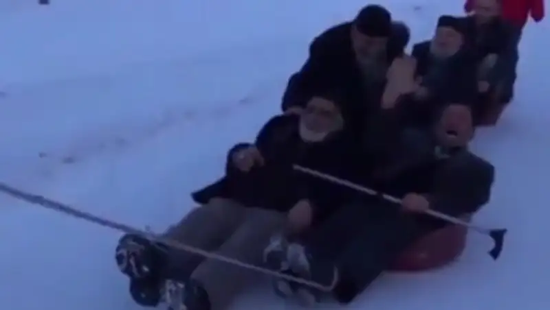 Группа турецких пенсионеров отправилась кататься на тазиках с заснеженной горки в турецкой провинции Эрзурум, пишет РИА Новости.