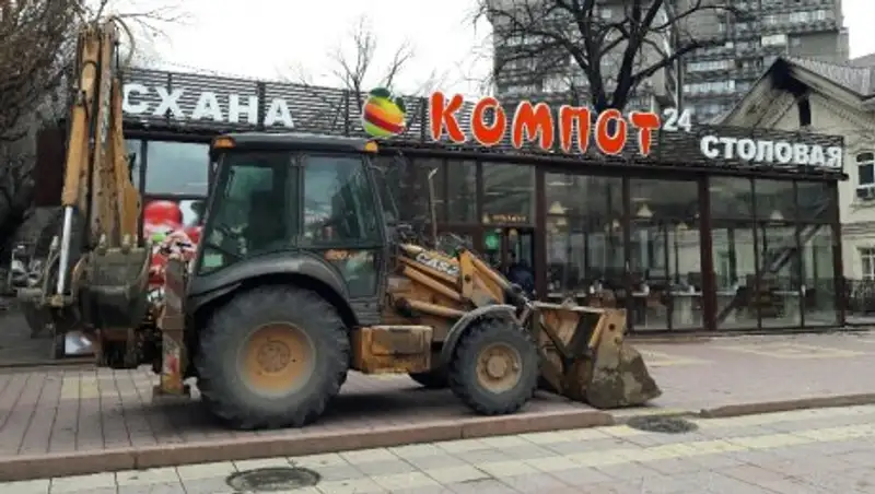 На Арбате в Алматы принудительно снесли незаконно возведенную столовую "Компот", передает корреспондент Zakon.kz.