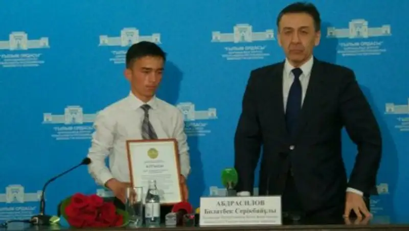 Героя нашего времени, проявившего отвагу и мужество, под бурные аплодисменты, наградили грамотой и подарками от Министерства образования и науки Республики Казахстан.