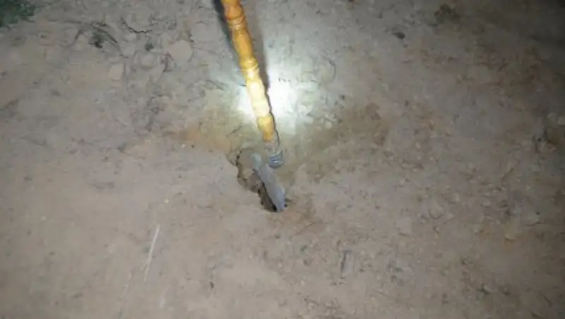 Найти это место оказалось задачей достаточно трудной, сразу и не заметишь. Бетонные плиты, которыми накрыли собаку, сверху завалили песком. Корреспонденту "Тумбы" удалось лишь немного раскопать песок до самой плиты, но чтобы полностью раскопать её, нужна лопата. Жива ли собака, не ясно – из-под плиты её не слышно. Все, что нам остаётся - лишь удивляться жестокости людей, в которых нет ни капли человечности.