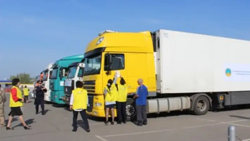 8 грузовиков с продуктами и стройматериалами отправились из Павлодара в СКО