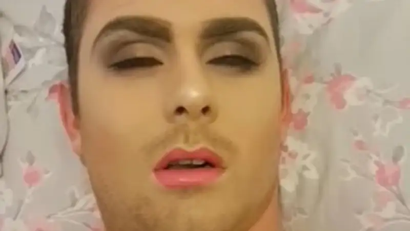 Пока Стивен крепко спал, девушка сделала ему профессиональный макияж и накрасила ногти. Судя по всему, парень действительно был мертвецки пьян, раз не почувствовал того, что с ним происходит. Пользуясь бесчувственным состоянием своего возлюбленного, Натали нанесла на лицо парня тональный крем, пудру, румяна, наклеила искусственные ресницы, нарисовала шикарные брови и накрасила губы нежно-розовой помадой.