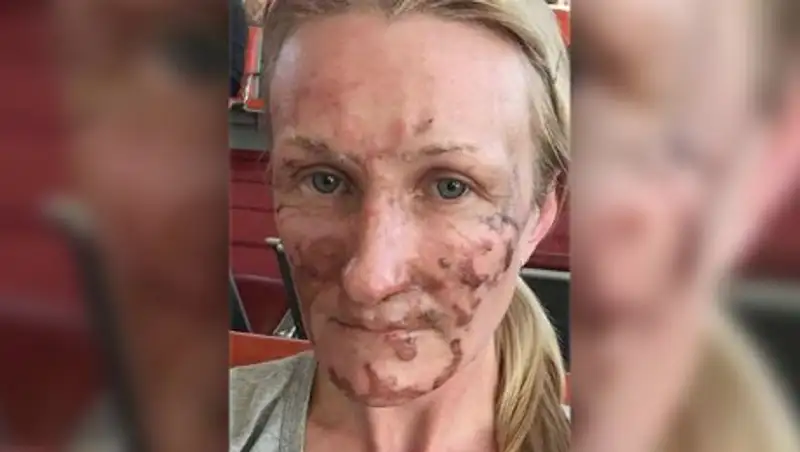 У женщины были диагностированы ожоги второй степени, из-за которых на её лице остались шрамы.