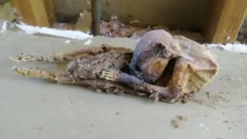 Пользователь портала Reddit под ником 16andALWAYSpreggerz опубликовал фотографию останков неизвестного существа, которые он обнаружил в стене во время реконструкции жилья, сообщает Лента.ру.