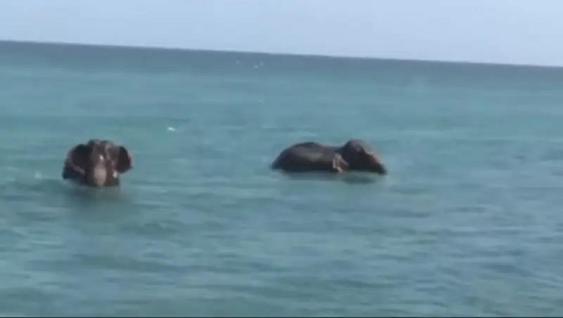 Животных заметили в километре от берега. Предположительно, слоны переходили лагуну Коккилай, когда их унесло в открытое море.