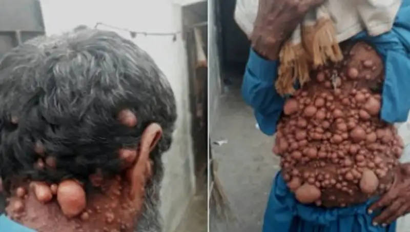 В городе Карачи на юге Пакистана живёт 56-летний мужчина, всё тело которого покрывают доброкачественные опухоли разного размера. Они начали появляться у него ещё в детстве и вскоре распространились по всему телу, сообщает Life.ru