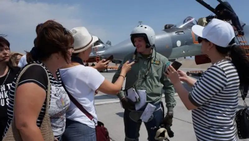 После беседы заместитель командира по воспитательной и идеологической части майор Серик Сарабузов провел экскурсию по столовой и ознакомил с рационом питания летчиков. Журналисты попробовали войсковую пищу и были очень благодарны работникам столовой за изумительный обед. В завершение усталые, но полные впечатлений, сфотографировались на память и убыли из авиабазы.