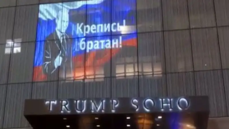 На фасаде отеля Trump SoHo в Нью-Йорке в ночь на 8 августа появилась проекция с изображением президента России Владимира Путина.