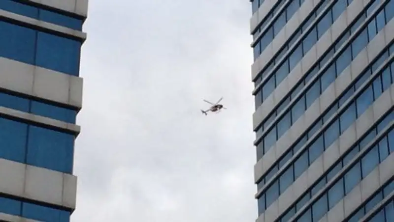Астанчан удивил зависший над городом вертолет. Воздушный аппарат "застыл" над одним из жилых комплексов столицы.