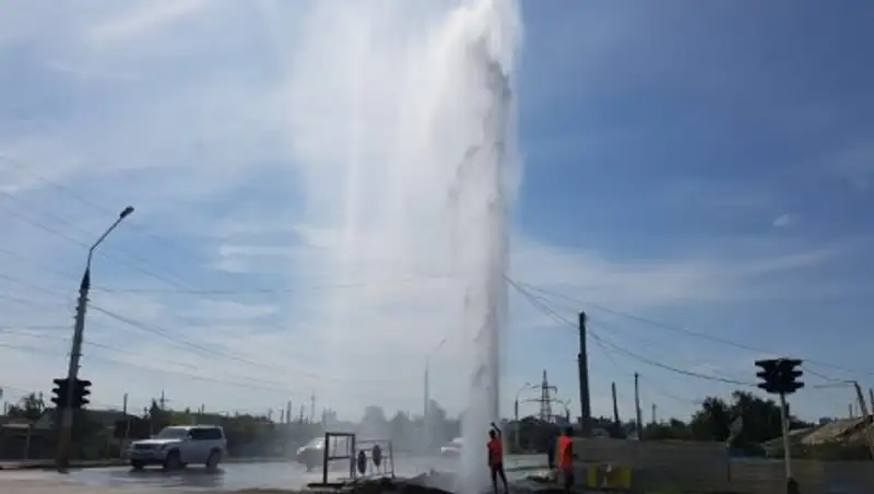 «Коммунальный» фонтан воды бьёт из-под земли в Костанае