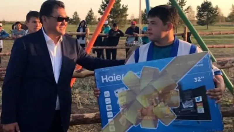 Өз кезегінде Павлодар облысының әкімі Болат Бақауов жеңімпазды құттықтап, Әміре Бағұстарға жаңа теледидарды сыйға тартты.