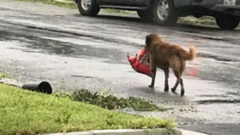 Огромную популярность в Сети получил снимок, на котором по улицам города Синтон бредет пес с целым пакетом собачьей еды в зубах. Комментаторы шутят, что пес очень тщательно приготовился к тому, чтобы переждать ураган в укромном месте и не испытывать проблем с едой. Некоторых беспокоило, что этот пакет собака откуда-то стащила, а значит стала мародером, от которых так сильно страдают разрушенные стихией города.