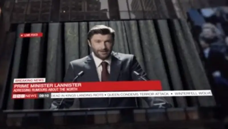 События оригинального сериала в ролике перенесены в XXI век. Слоган проекта — «Чем больше все меняется, тем больше все остается по-старому». В современном городе, показанном в ролике, есть улица Таргариен, а с экранов на фасадах домов вещает премьер-министр Ланнистер.