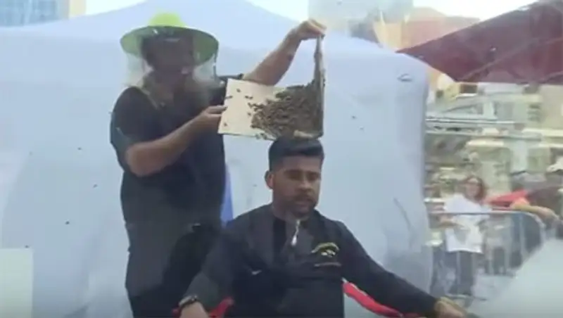Опасный трюк: канадец поставил рекорд, облепив себя пчелами и просидев так больше часа
