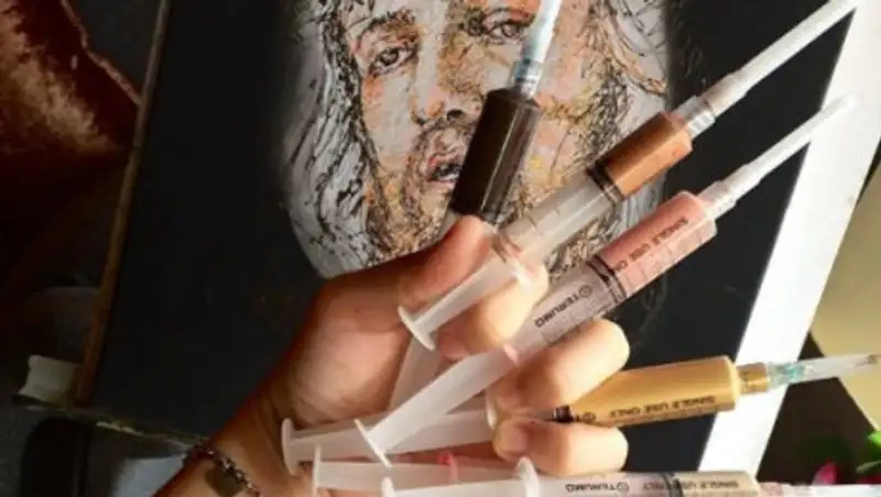 Девушка открыла для себя совершенно новое художественное направление — рисование шприцем.