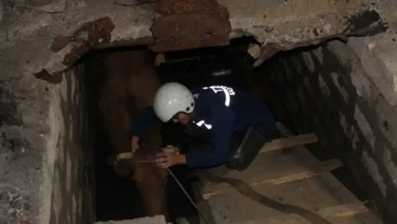 Атырауда құтқарушылар орға түскен сиырды шығарды