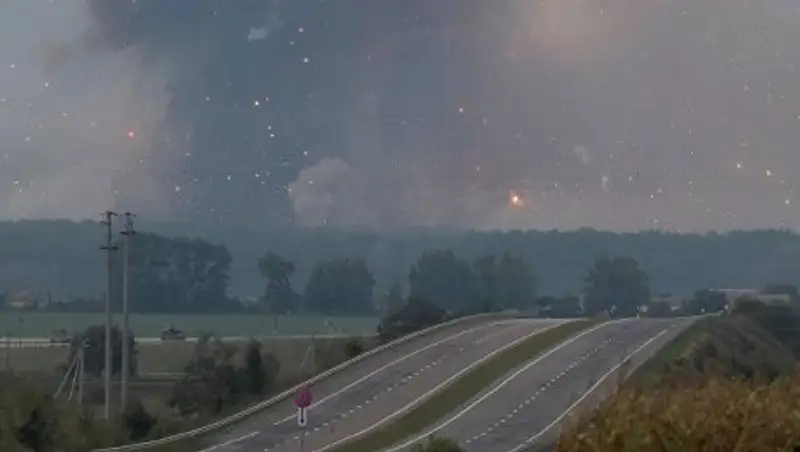Пожар на складе в Винницкой области начался вечером 26 сентября. На площади в 60 гектаров хранилось 188 тыс.тонн боеприпасов.