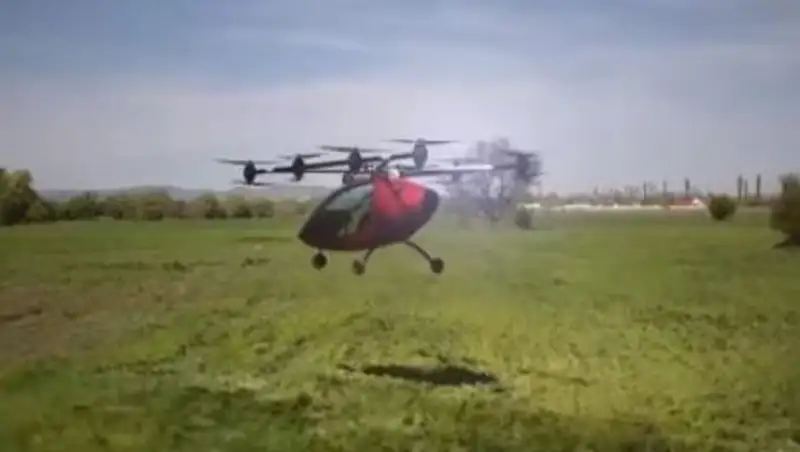Пассажирский коптер представляет собой лёгкую конструкцию размером с небольшой автомобиль, оснащён 16 винтами и может управляться дистанционно.