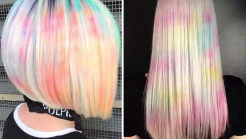 Чего только ни делали девушки с волосами за последние пару лет в угоду моде и жажде экспериментов: красили их в «бабушкин» серый, оттенок розового золота или даже полинявших джинсов. Но этот новый тренд куда смелее и ярче своих предшественников. А его истоки стоит искать даже не столько в сфере парикмахерского искусства, сколько в…маникюре. Помните, как еще недавно модницы, насмотревшись картинок в Pinterest, танцевали с бубном, водой, лаком и пенкой для бритья, чтобы добиться «мраморного» эффекта на ногтях? Вот теперь делают примерно то же самое, только с волосами.