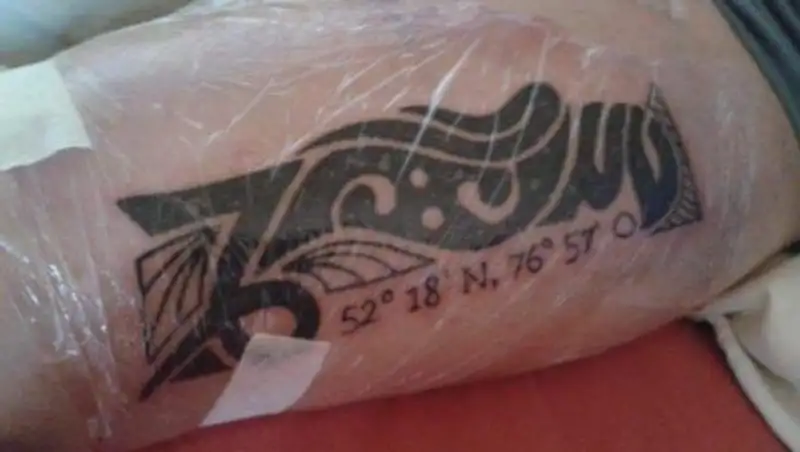 24-летний Никлас Вервекин, который родился в Павлодаре, а в этом году окончил профессиональный лицей и начал работать прорабом в строительной компании города Клеве земли Северный Рейн-Вестфалия, сделал себе на правом бицепсе татуировку с координатами города Павлодар, а также с инициалами «NV», которые с одной стороны стали первыми буквами его имени и фамилии, а с другой - первыми буквами имён его мамы и папы.