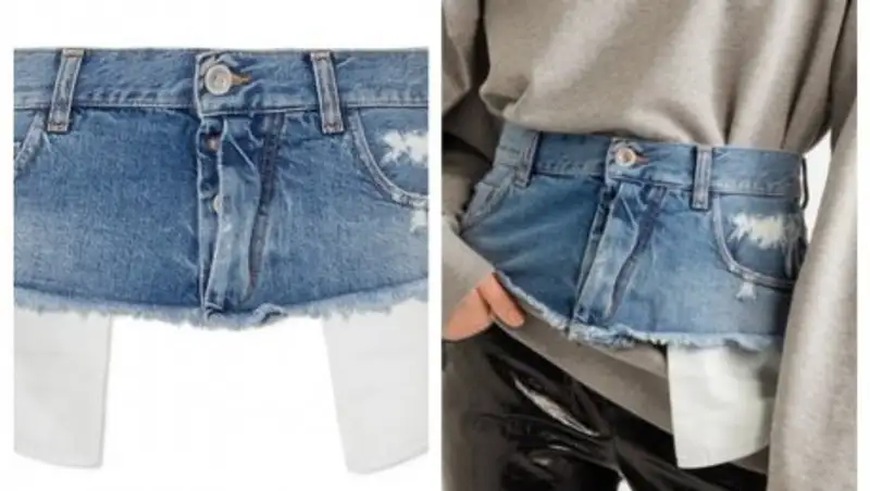 Аксессуар выполнен по типу джинсов с карманами и молниями, лишённых всей нижней части с того уровня, где начинается ширинка. Модный дом предлагает носить его поверх одежды. Ранее тот же модный дом уже предлагал джинсы наизнанку за $900.