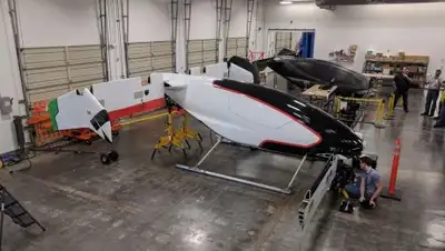 У аэротакси Vahana овальная каюта, у нее есть самолетные крылья, а также восемь моторов, с помощью которых транспортное средство поднимается в небо.