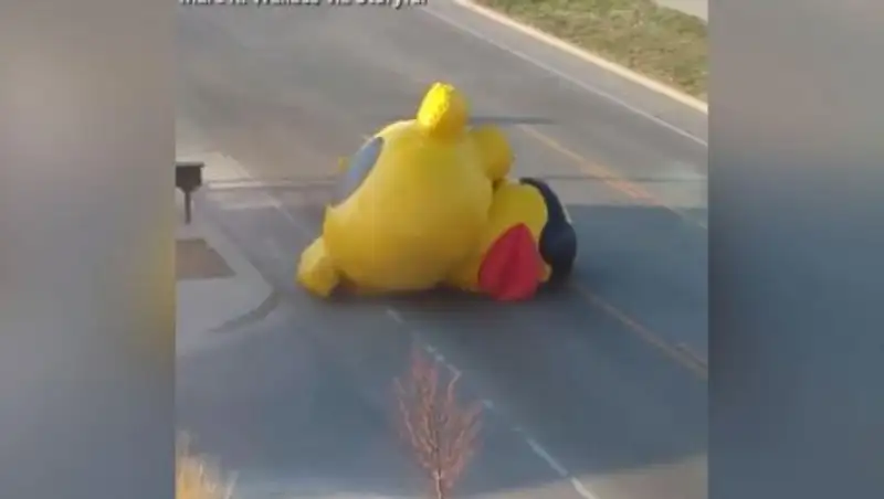 Огромная надувная утка сорвалась с привязи и покатилась по улице американского города