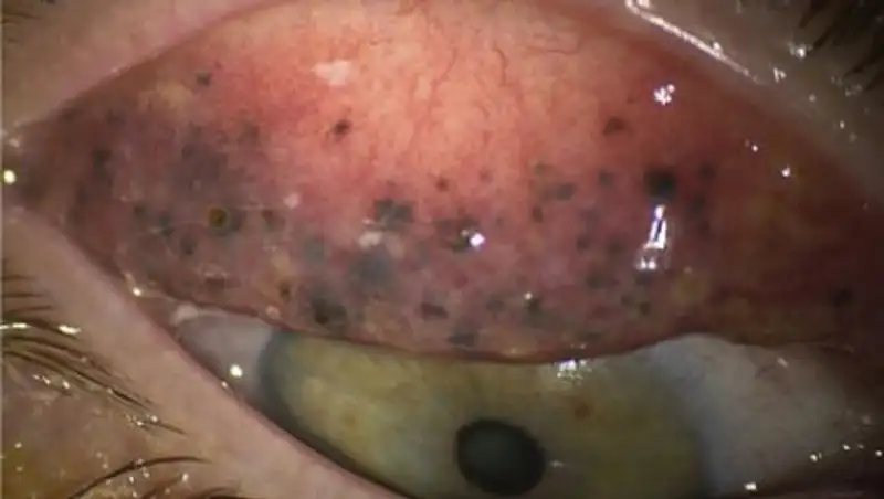 Тереза Линч (Theresa Lynch) из Сиднея пожаловалась офтальмологу на резь в глазах. Во время осмотра врач обнаружил на обратной стороне век 50-летней женщины черные пятна. «Она призналась, что больше 25 лет активно пользовалась тушью для ресниц и далеко не всегда ее смывала», — отметила доктор Дана Робаи (Dana Robaei).