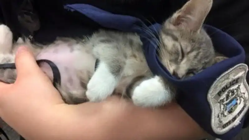 Спасённый котёнок поднялся по служебной лестнице в местном полицейском управлении и стал первым официальным офицером с лапками, сообщает Лайф.