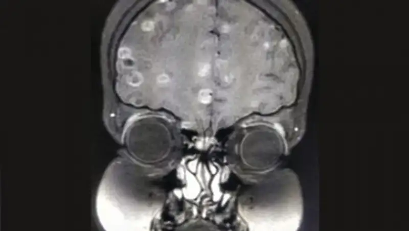 Полгода спустя отчаявшиеся родители отвели ее к другому доктору. Снимок мозга показал, что ребенок страдает цистицеркозом головного мозга, то есть в ее голове находятся личинки свиного цепня. Врачи предполагают, что девочка заразилась ими либо из-за немытых фруктов и овощей, либо из-за недоваренной свинины. В кишечнике личинки внедрились в стенку кишки и через кровеносную систему добрались до мозга.