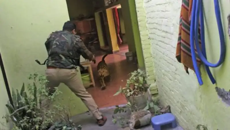 «Полицейский застрелил дикого леопарда в Лакхнау, позже лесная команда объявила, что он умер. Я сделал эту фотографию, стоя за спиной полицейского. Всё происходило примерно в пяти метрах от меня».