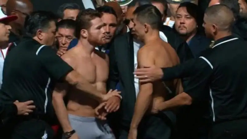 Взвешивание Головкина и Альвареса чуть не обернулось стычкой