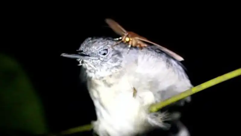 Все описанные ученым случаи происходили ночью, когда спящие птицы не реагировали на насекомое.