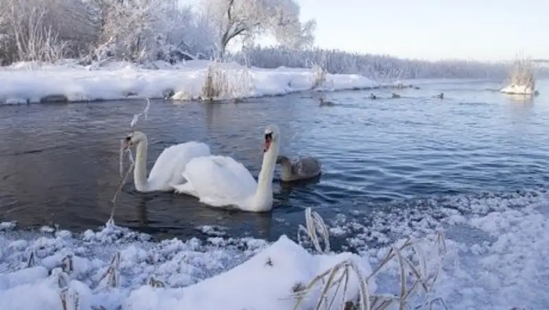 Отловленные птицы были перемещены на незамерзающее озеро.