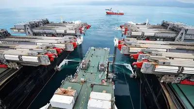 "Труба "Турецкого потока" с завершающим стыком спущена в акваторию Черного моря", — доложил он с борта плавучего судна-трубоукладчика.