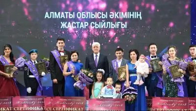 Молодые лидеры 2018 года были награждены накануне в Талдыкоргане. Вручение ежегодной премии акима Алматинской области "Көшбасшы - 2018" в преддверии Дня Президента состоялось накануне в новом здании театра им.Б.Римовой. Заслуженные премии вручил аким Алматинской области Амандык Баталов, сообщает Zakon.kz со ссылкой на пресс-службу акима Алматинской области.