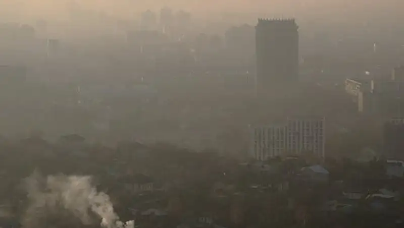 Густая полоса накрыла нижнюю часть города, ее было заметно из окон многоэтажных домов.