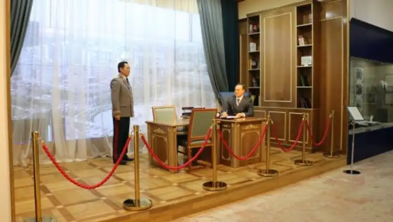 Экспозиция представляет собой главу государства, сидящего за рабочим столом и подписывающим приказ о назначении генерала-полковника Сагадата Нурмагамбетова министром обороны Казахстана в 1992 году. Сагадат Нурмагамбетов - первый министр обороны независимой Республики Казахстан (1992—1995), Герой Советского Союза (1945), Народный Герой Казахстана (1994). Генерал армии Республики Казахстан (1993).