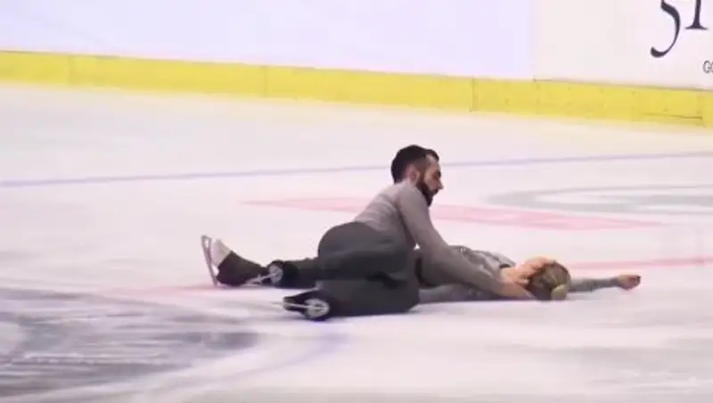 Ледук выполнял поддержку одной рукой и не смог удержать Кейн, когда опускал ее на лед.