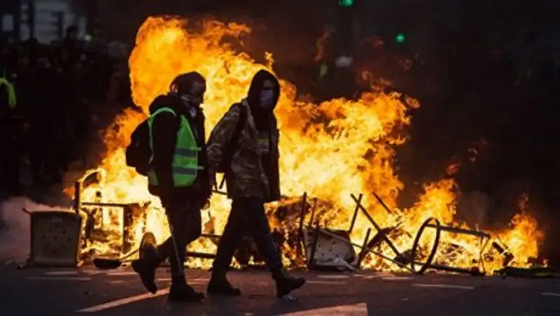 Массовые протесты сопровождаются столкновения демонстрантов с полицейскими, погромами и поджогами автомобилей, разрушениями банков и магазинов.