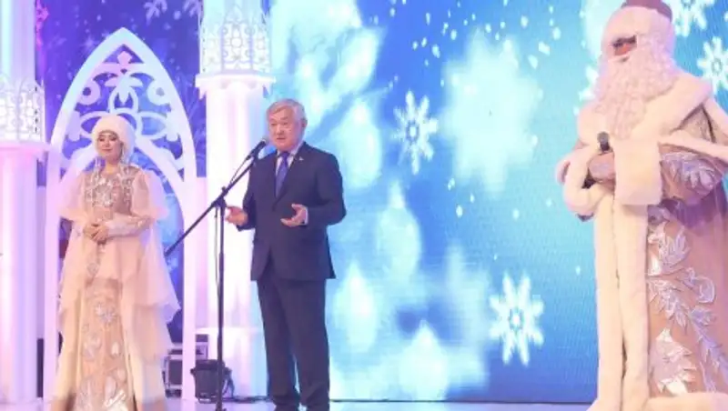 После зажжения eлки и показа видеопоздравления Президента страны Нурсултана Назарбаева аким области Бердыбек Сапарбаев вручил каждому ребенку подарок от имени Главы государства.