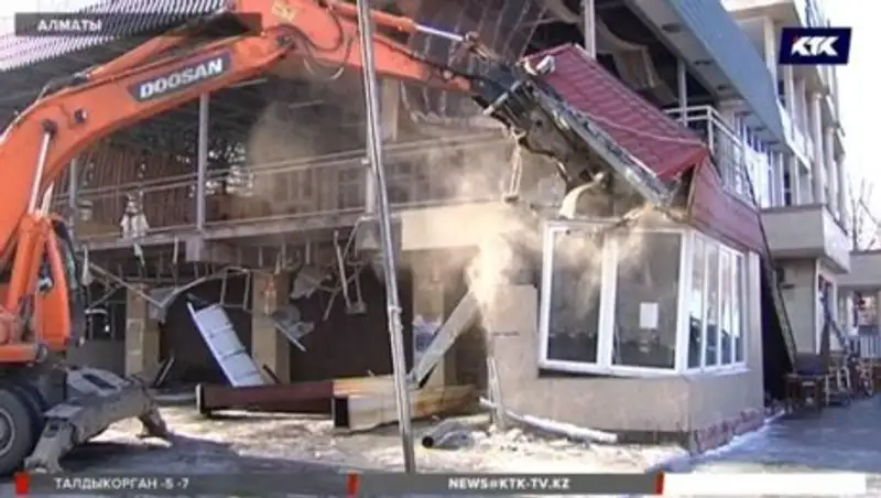 - Вот это незаконное строение владелец обязан полностью снести. Сегодня мы исполнили решение суда и пригнали спецтехнику для демонтажа фасада здания и незаконных пристроек. Все до конца должен сделать уже сам хозяин здания. А земля в городской собственности, и уже позже районные власти решат, что будет с участком, - говорит гл. специалист юридического отдела ГАСК г. Алматы Аскар Дюсебаев.