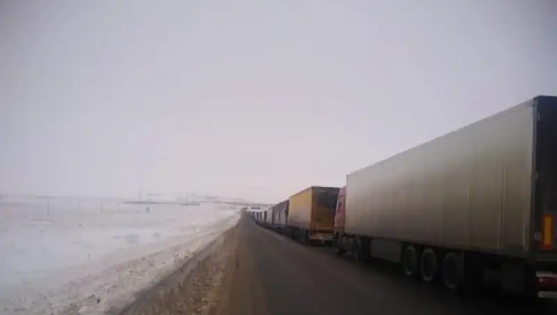 Грузовые фуры стали скапливаться на границе примерно четыре дня назад. Вчера, 18 января, на подъезде к казахстанскому посту "Сырым", скопилось 500 грузовых машин. Такое же количество машин скопилось с российской стороны, и около сотни фур заблокировали дорогу на нейтральной полосе.