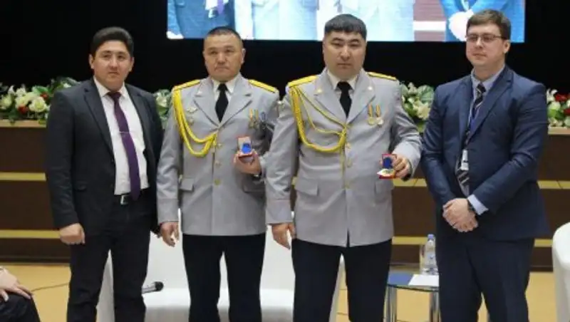 Первых таких нагрудных знаков удостоились исполняющий обязанности командира роты, старший лейтенант полиции Данияр Ермаганбетов и командир взвода - старший лейтенант Кажимурат Жумагазинов.